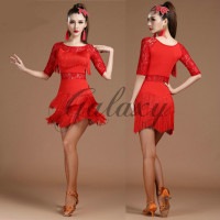 ラテンダンス衣装 社交ダンス ワンピース フリンジ 5色 コスチューム 舞台 ステージ衣装 hylk28(hylk28)